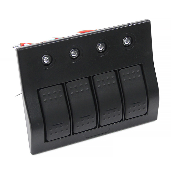Панель переключателей 4шт с автоматическими выключателями с индикацией для катеров, яхт и моторных лодок предназанчеными для удобного управления различными функциями судна.