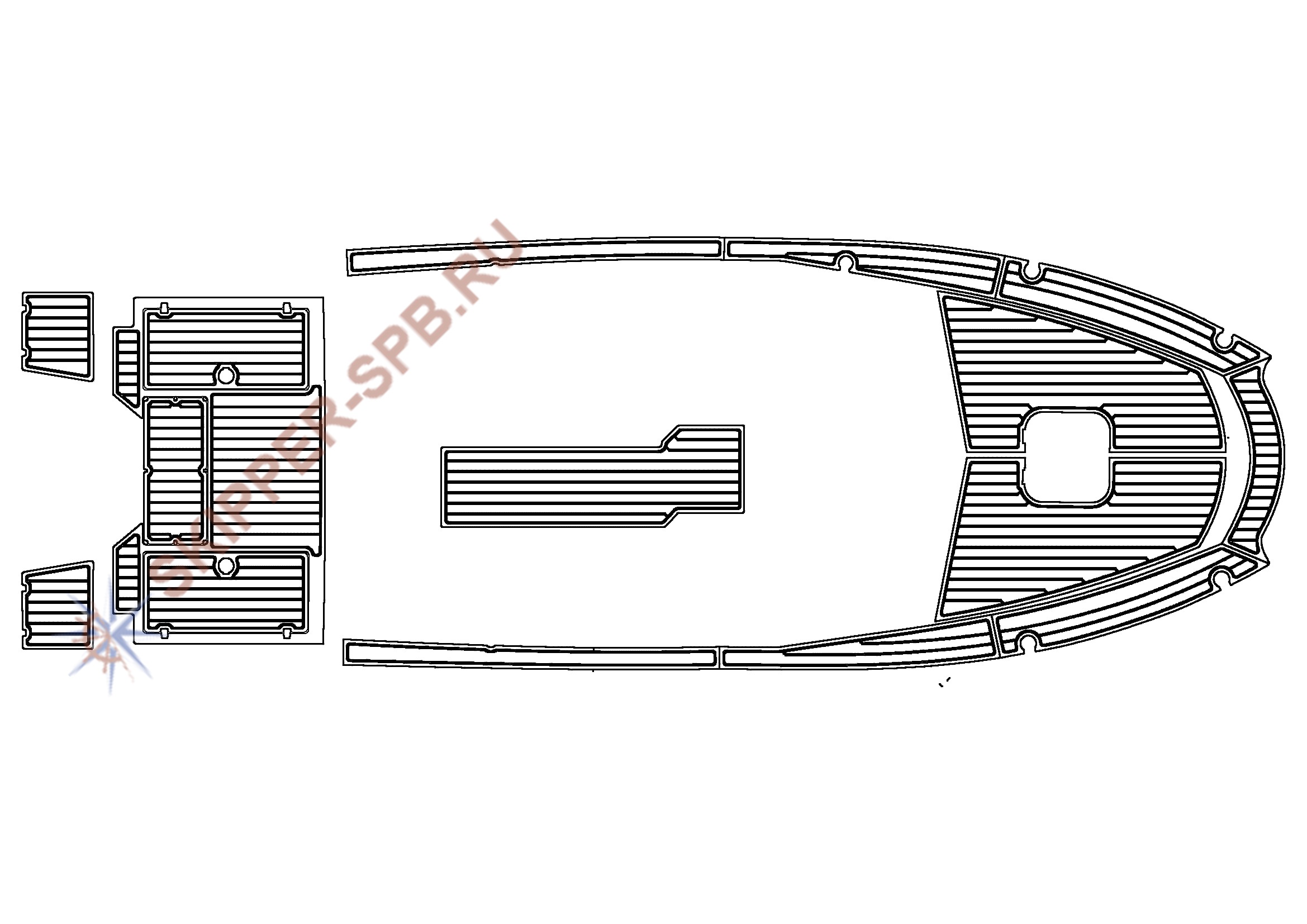 Готовый комплект палубного покрытия на катер Волжанка Cabin 67 - аналог искуственного тика.