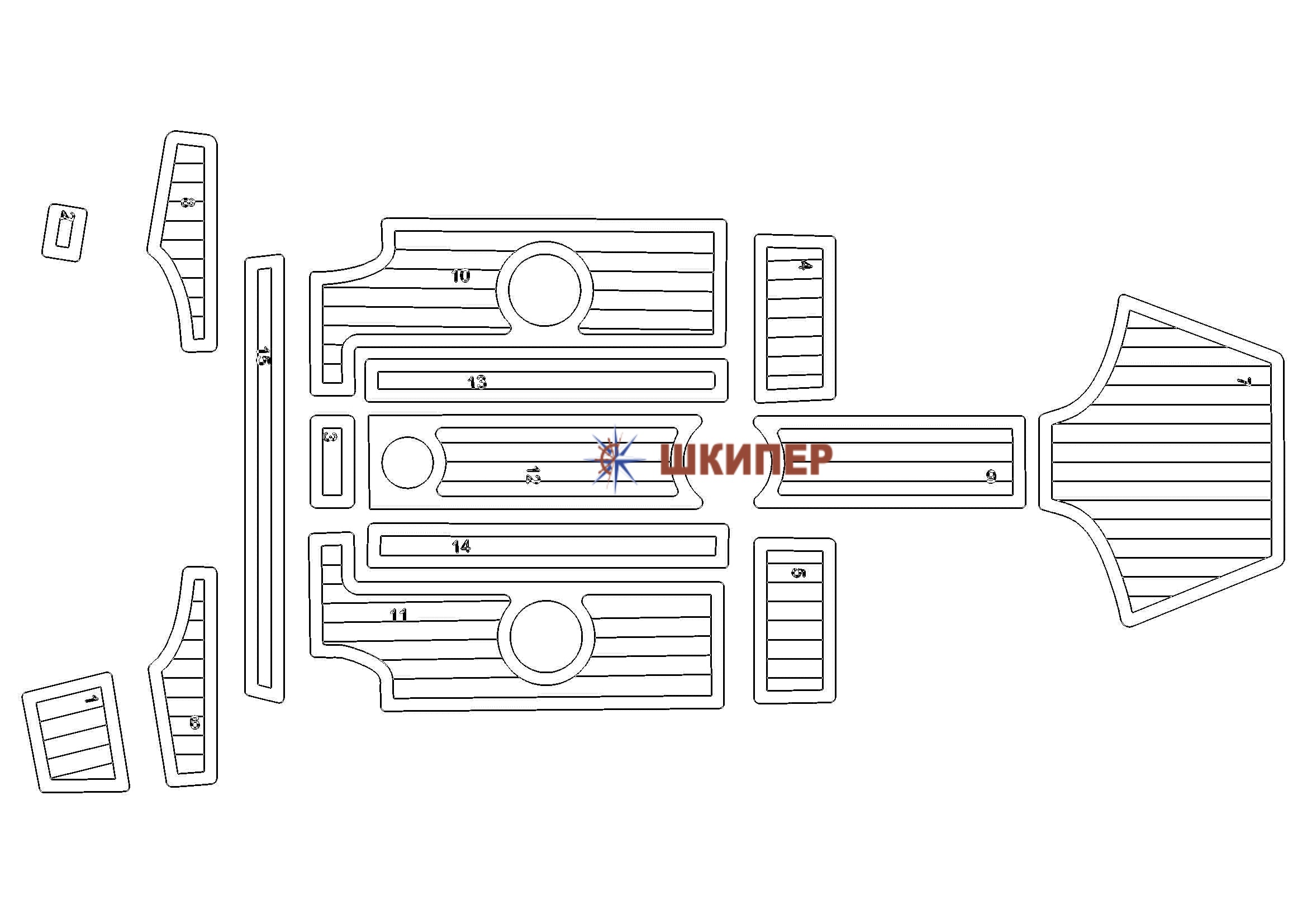 Готовый комплект палубного нескользящего покрытия на катер Velvette 18 из искуственного тика.