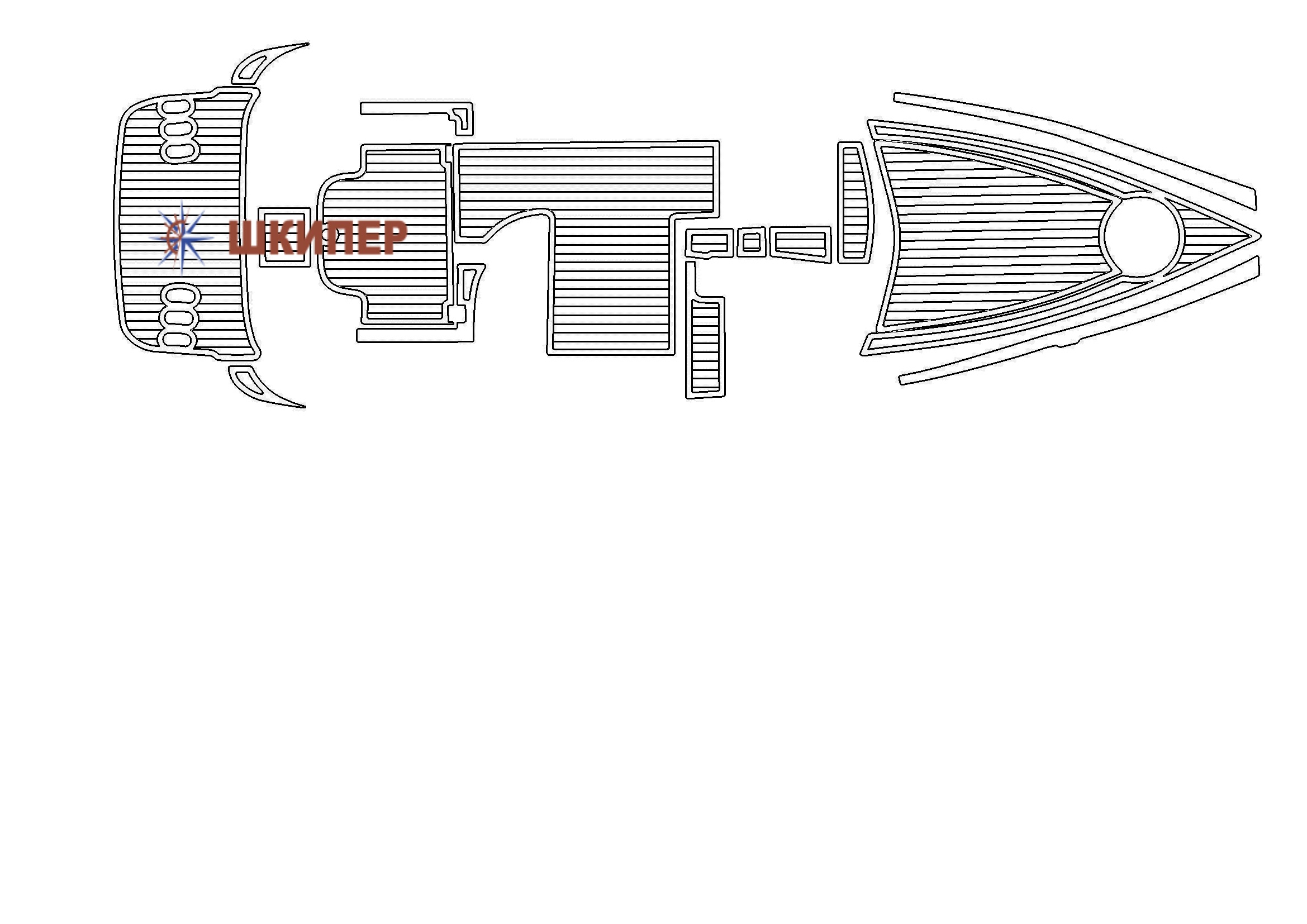 Готовый комплект палубного нескользящего покрытия на катер Velvette 29 из искуственного тика.