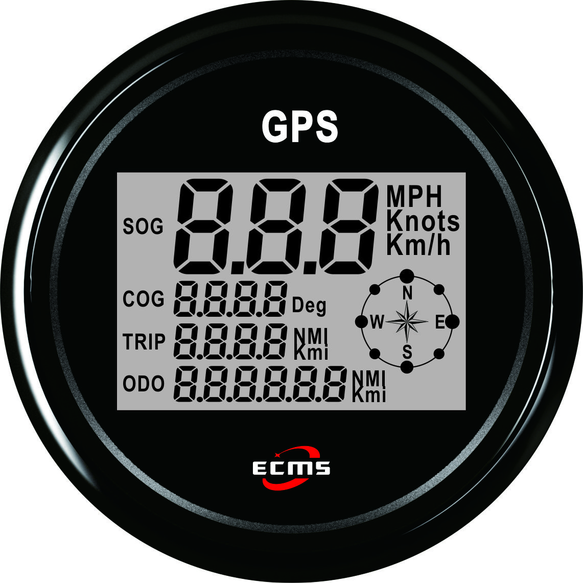 Многофункциональный цифровой GPS спидометр черный циферблат, обод из окрашенной в черный цвет нержавеющей стали.